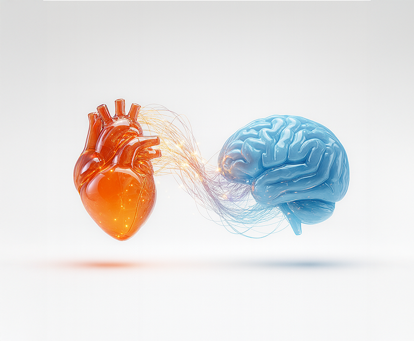 Your body signals (breath, heart rhythm, posture) and your brain states (calm, focus, readiness,…) constantly talk to each other.
